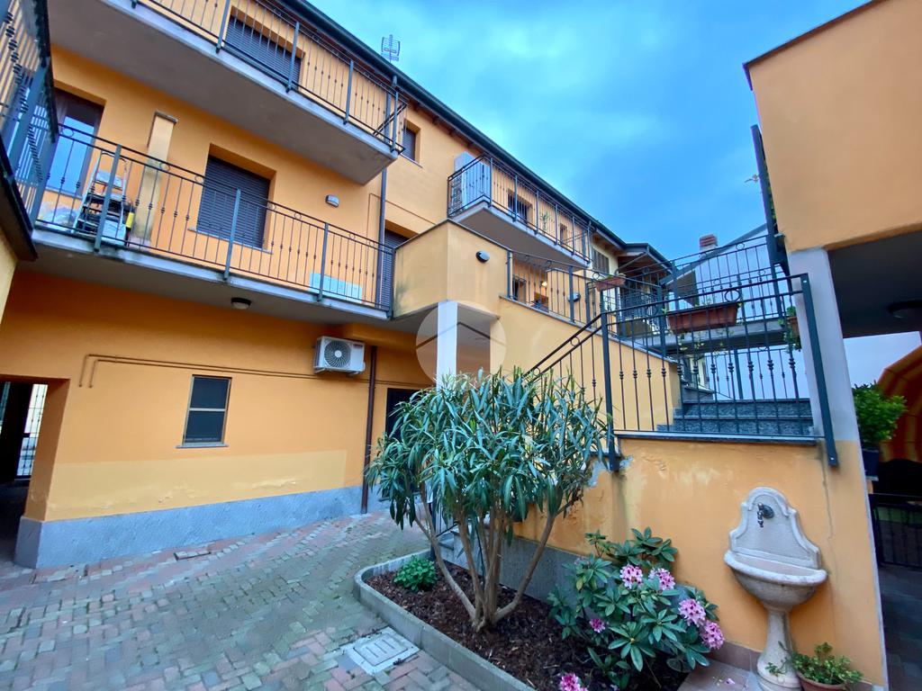 APPARTAMENTO: si accede all'immobile al piano rialzato con soggiorno e cucina a vista e balcone, mentre tramite la scala interna si accede al piano primo suddiviso in bagno con doccia e ampia camera da letto con balcone privato. affittato completamente arredato come da foto con aggiunta di box doccia, mobiletto bagno, stoviglie di vario genere e microonde