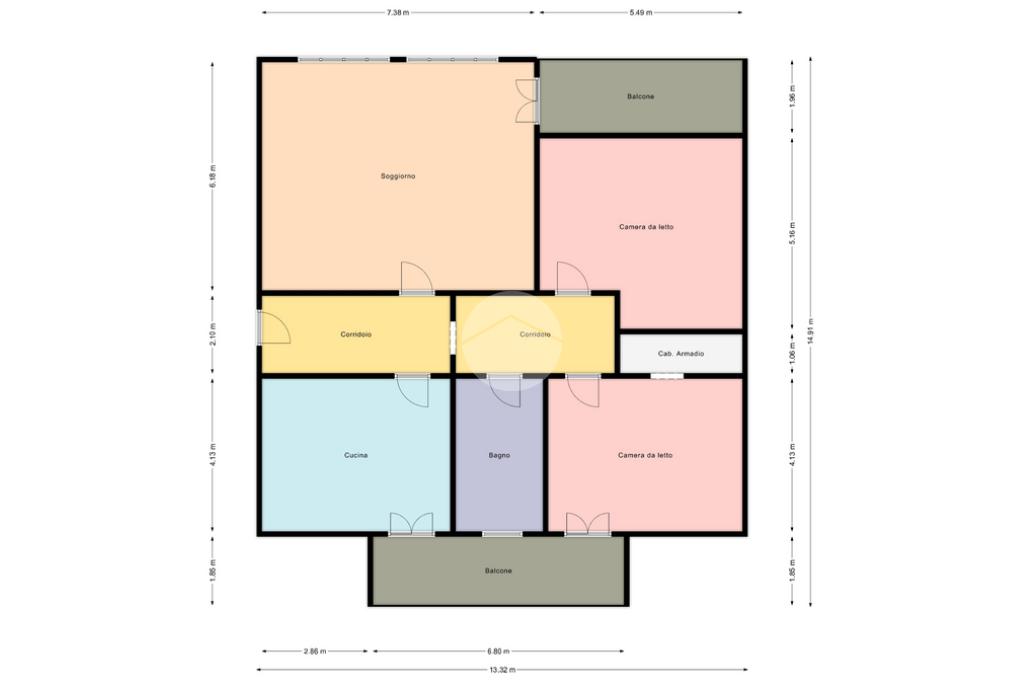 L’abitazione è composta da un soggiorno di generose dimensioni, una cucina abitabile separata, due camere matrimoniali e un bagno. Gli spazi sono comodi e ben distribuiti, pensati per chi ha bisogno di metrature vere e non di soluzioni di compromesso.