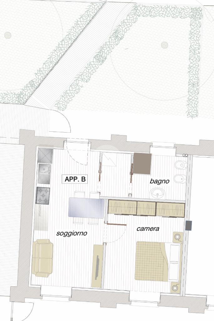 APT. B: Bilocale con giardino privato e posto auto – € 230.000